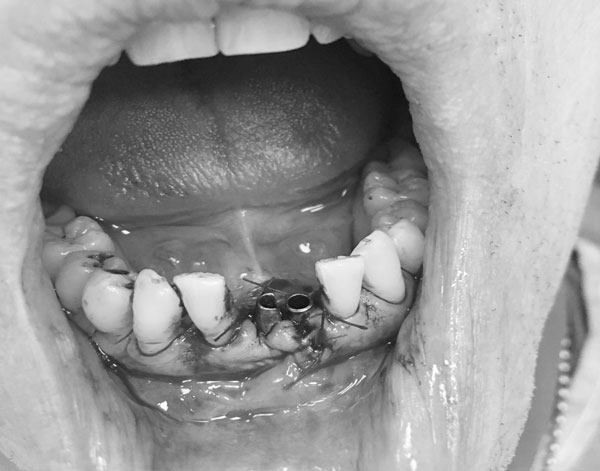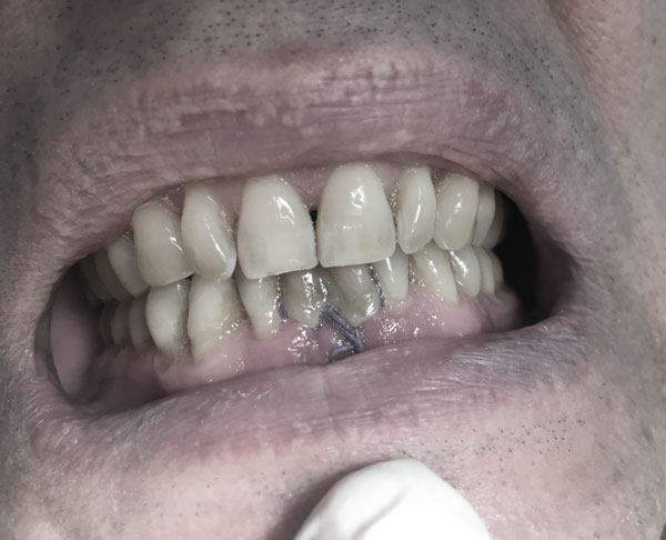 Рис.4 Фиксация провизорных коронок, наложение швов