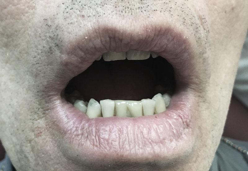 Рис.5 Эстетический результат через полчаса после экстракции зубов 31, 41 и замещением их имплантатами на временных коронках.