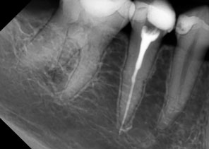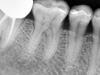 Качество снимков обладает высокой разрешающей способностью отношение сигнал /шум – важнейший фактор в получении изображения, составляет >37 dB, размер пикселя 0,035 мм. Благодаря высокой чувствительности и вариабельности размеров датчиков, визуализация становится детальной, в этой связи возможно проведение диагностики кариеса на контактных поверхностях. Преимущества данной методики при сравнении с пленочной рентгенографии состоит в скорости получения изображения объекта исследования, низкая доза облучения пациентов, возможность постпроцессорской обработки, визуализации деталей в диагностике послеоперационных результатов дентальной имплантации, эндодонтического лечения и постэндодонтического лечения (Рис.5), уточнения расположения кист, гранулем, конкрементов в протоках слюнных желез.