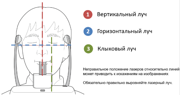 - Ориентирование головы пациента по вертикальному, горизонтальному и клыковому лазерам обеспечивает четкие снимки и нивелирует подобные искажения.