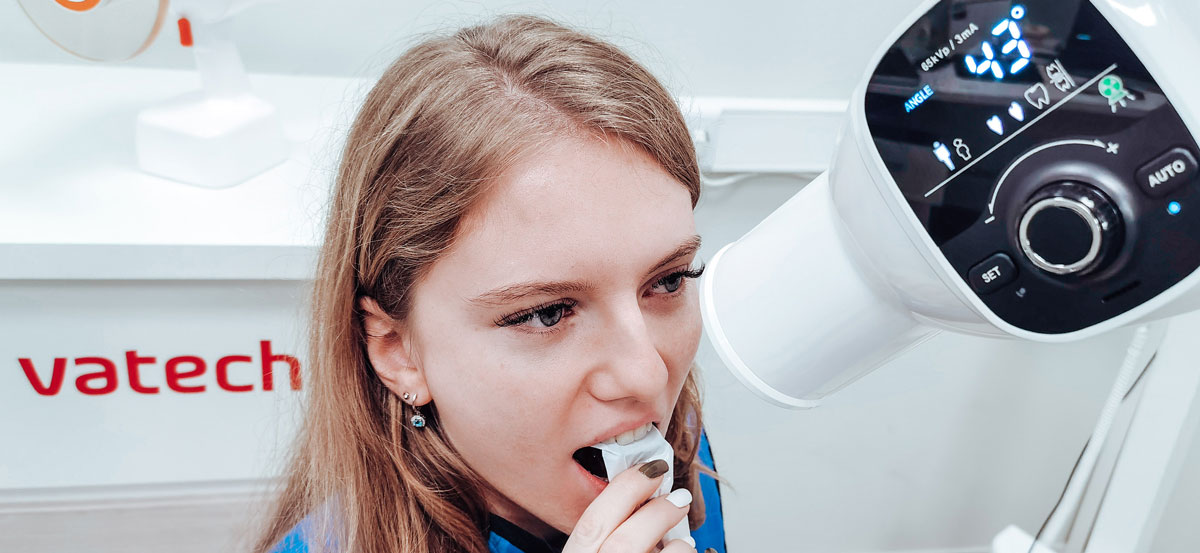 Лучевая нагрузка при данном виде исследования зависит от параметров (напряжения, силы тока и времени экспозиции) дентального рентгеновского аппарата и составляет в среднем 1 микрозиверт (мкЗв). За счет специальной технологии CNT дентальный аппарат EzRay Air Vatech позволяет выдавать дозу в 0.7 мкЗв.